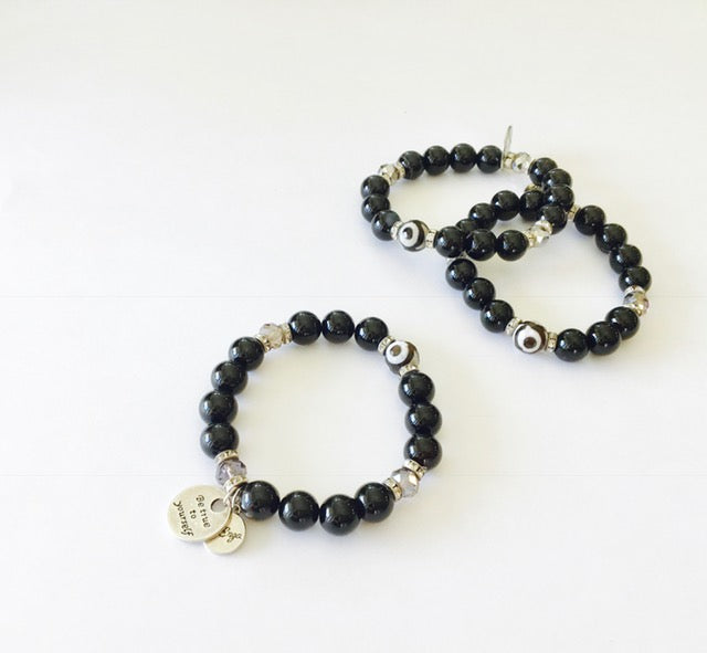 There is an evil eye located in each bracelet. These are protective bracelets which are meant to keep you protected from “Evil Eyes”…negative thoughts, energy and jealousy!