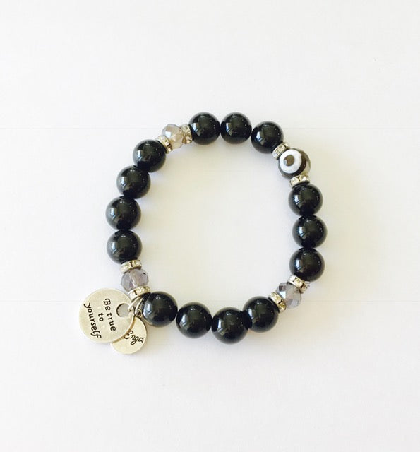 The black agate beads symbolize health, prosperity and longevity. This bracelet also represents courage, strength, protection, balance, harmony and creativity.